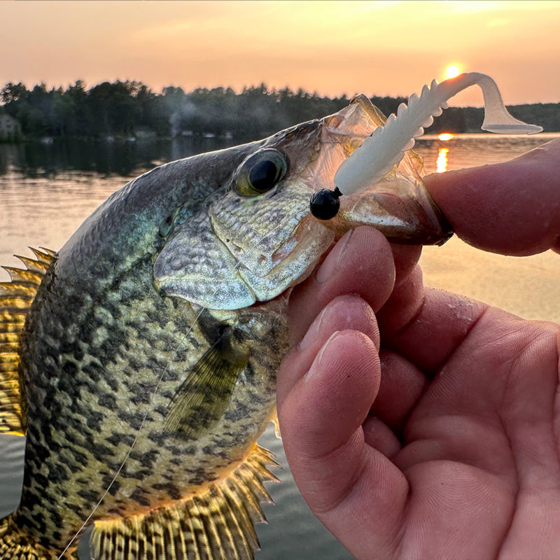 Thread a Spike J Shad onto a jig, cast it, and retrieve it. Watch the tail kick back and forth, mimicking a baitfish. Each lure is also infused with TERABITE, which releases a plume of yummy smells and flavors into the water, making this bait irresistible.