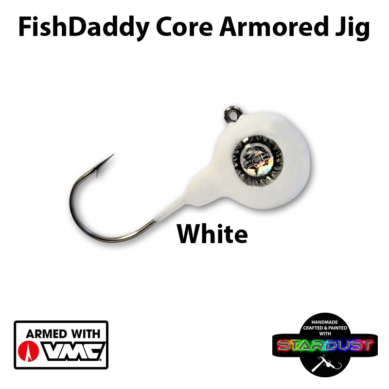 The FishDaddy Core Armored Jig is a multi-species high-end jig. Confidently cast it towards the docks or thump it on the rocks. The Stardust no-chip paint keeps the jig looking pristine and ready to dance with the next fish. The crip liquid glass eye allows the sunlight to reflect off the FishDaddy logo. The high-quality VMC hooks ensure a strong hold for landing your trophy. With 8 vibrant colors and 3 versatile sizes, these jigs offer endless options for catching fish in fresh or saltwater.